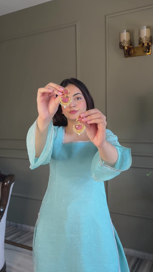Aqua Blue Crunchy Silk Farshi Salwar Suit with Swarovski Work & Dupatta